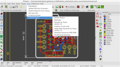 Delving deeper into the plugin cosmos, you’ll uncover a range of methods for invoking these tools. For those who prefer a graphical interface, the “Plugins” menu provides a comprehensive list of installed plugins, each poised to be activated with a simple click. Alternatively, seasoned users can harness the power of keyboard shortcuts to streamline their workflow. Assigning custom shortcuts to your favored plugins allows for lightning-fast access, enabling you to seamlessly integrate these tools into your design process. Additionally, scripting enthusiasts can delve into the realm of Python scripting to craft custom plugins, tailoring KiCad to their unique requirements and unlocking boundless possibilities for innovation.