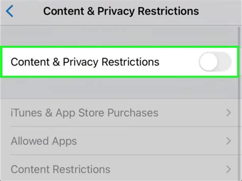Once you’re in the Restrictions settings, you’ll see a list of categories or options related to restrictions. Find the specific restriction you want to turn off, such as “App Limits,” “Content & Privacy,” or “Location Services.”