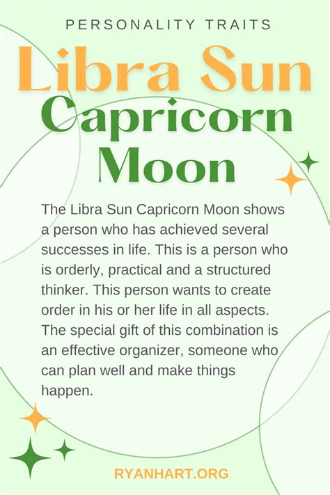 Libra Sun Capricorn Moon individuals are charming, diplomatic, and ambitious. They strive for balance in their lives and relationships, and they possess an unwavering determination to achieve their goals.